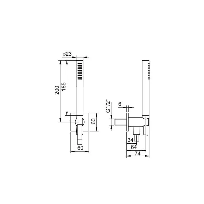 Душевой набор Fantini Ak/25 вывод воды 1/2", шланг 150 см, ручная лейка FIT, держатель для лейки, Matt Gun Metal PVD 86 P5 8116