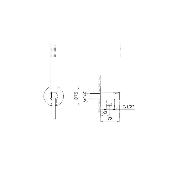 Душевой набор Fantini Al/23 вывод воды 1/2", шланг 150 см, ручная лейка FIT, держатель для лейки, хром 81 02 8062