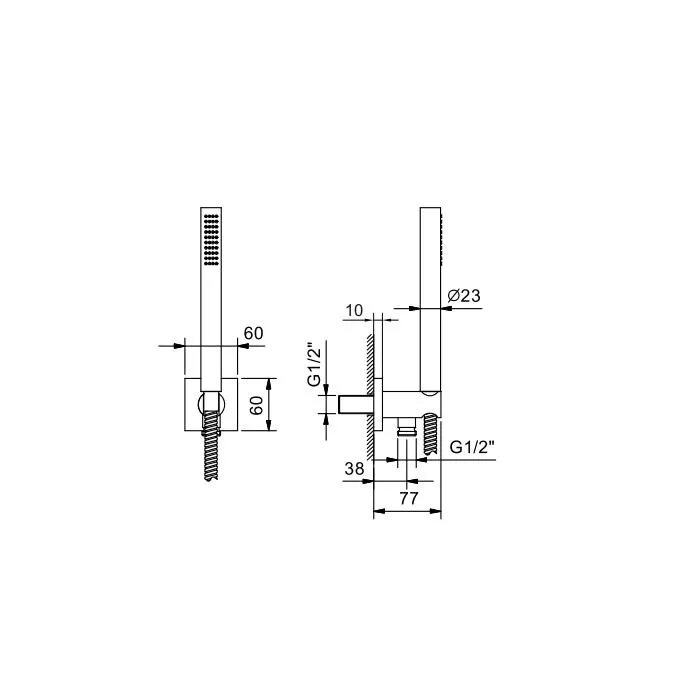 Душевой набор Fantini Milano вывод воды 1/2", шланг 150 см, ручная лейка FIT, держатель для лейки, матовая натуральная сталь 86 93 8052