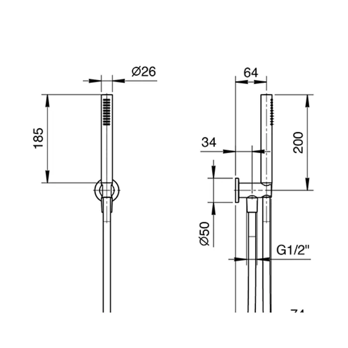Душевой набор Fantini Milano вывод воды 1/2", шланг 150 см, ручная лейка FIT, держатель для лейки, матовая натуральная сталь 86 93 8093