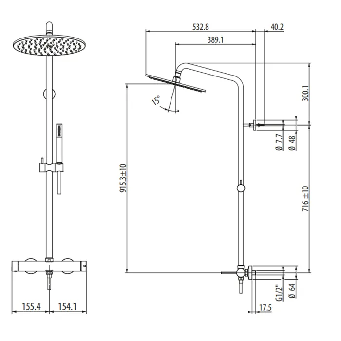 Комплект для душа Gattoni Circle Two монокомандный еситель, душевая стойка, душевая лейка 250, ручной душ, хром 9195/PDC0