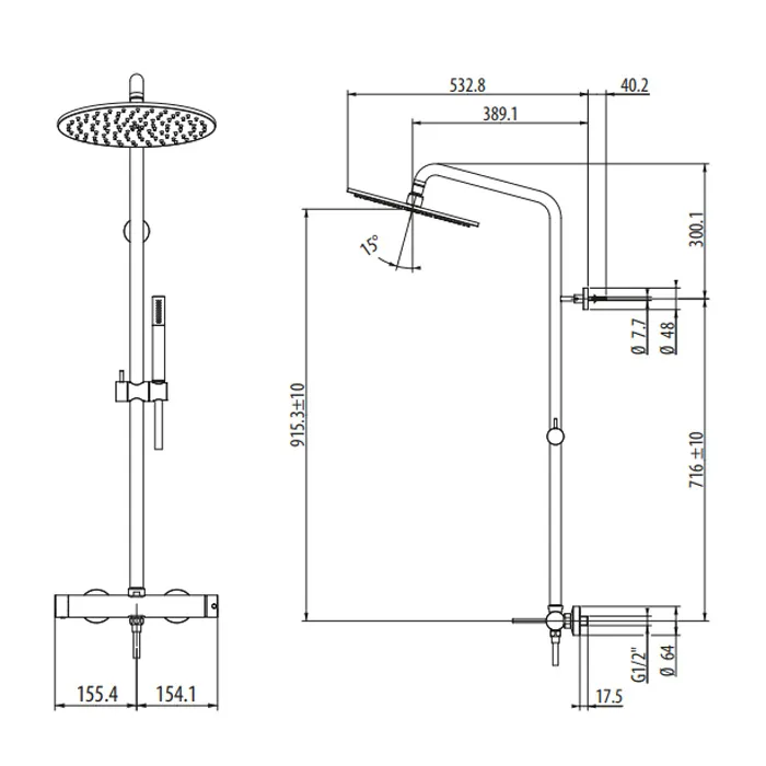 Комплект для душа Gattoni Circle Two монокомандный еситель, душевая стойка, душевая лейка 250, ручной душ, nero opaco 9195/PDNO
