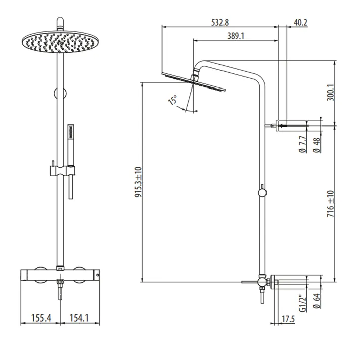 Комплект для душа Gattoni Circle Two монокомандный еситель, душевая стойка, душевая лейка 250, ручной душ, хро 9095/PDC0