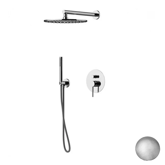 Комплект для душа со встроенным смесителем с Gbox с ручной лейкой и верхним душем Gattoni Circle Two/one 250, nickel spazzolato 9190/PDNS