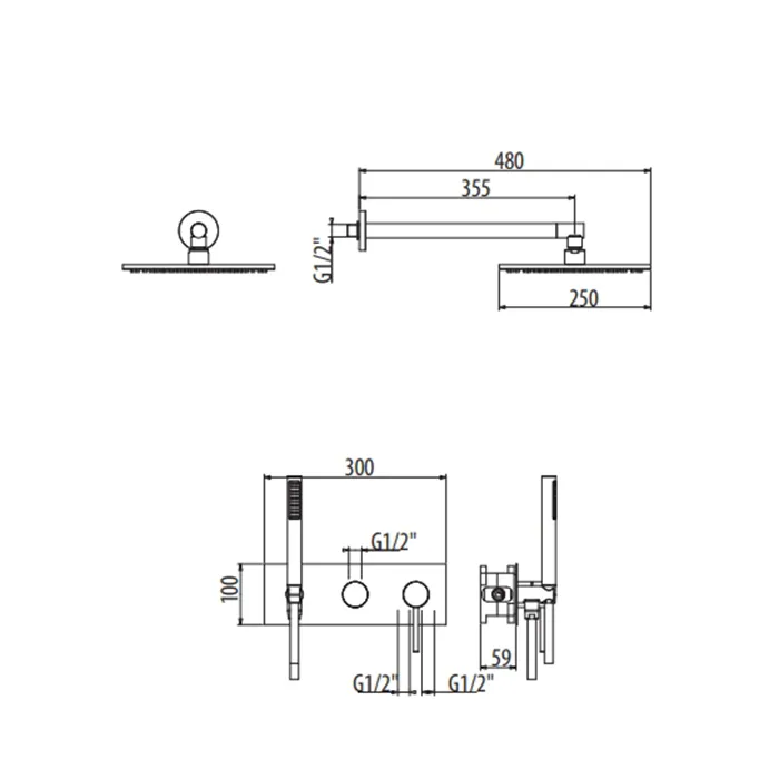 Комплект для душа со встроенным смесителем с ручной лейкой и верхним душем Gattoni Circle Two 250, nero opaco 9170/PDNO