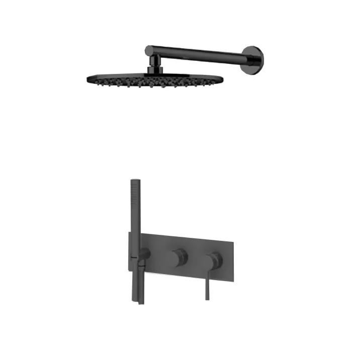 Комплект для ванны со смесителем двстроенным Gattoni Circle One на 2 вых, ручной лейкой и верхним душем 250, nero opaco 9070/PDNO