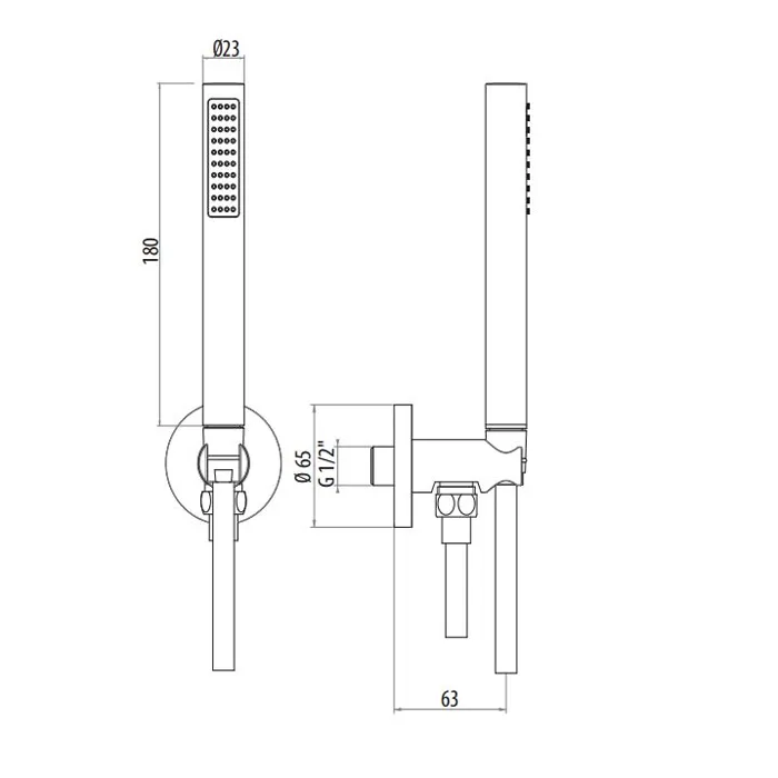 Набор для душа Gattoni душевая лейка c 1-м режимом, выпуск из стены- держатель душа, шланг 150, хром KTC01/PDC0