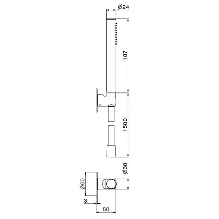 Ручной душ OLE с держателем для лейки и шлангом Kerama Marazzi без выхода для подачи воды, черный матовый 857KM.01.093