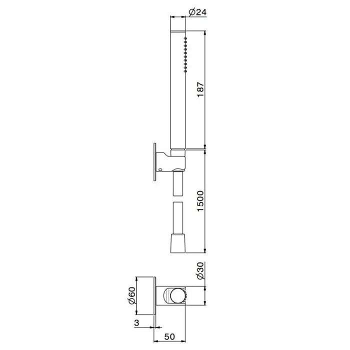Ручной душ OLE с держателем для лейки с шлангом Kerama Marazzi без выхода для подачи воды, хром 857KM.21.018