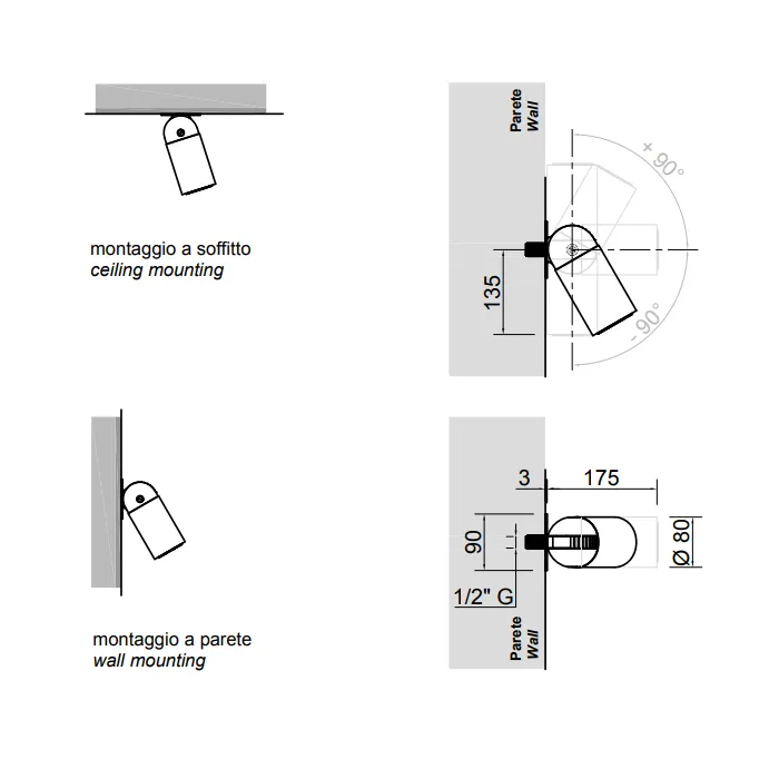 Настенная или потолочная душевая лейка Antonio Lupi Azimut 8, с регулируемым потоком, графит А0002423480