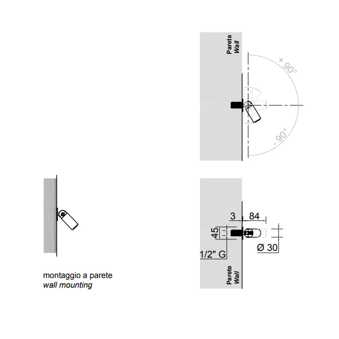 Настенная или потолочная душевая лейка Antonio Lupi Azimut 8, с регулируемым потоком, графит А0002423725