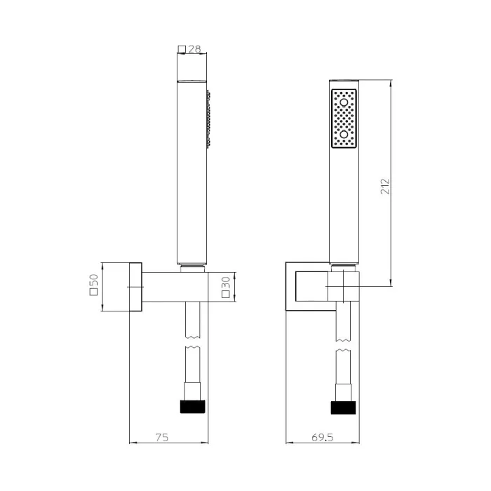 Bossini Cube Ручной душ с поворотным держателем и шлангом 150см., цвет: черный матовый C51023.073