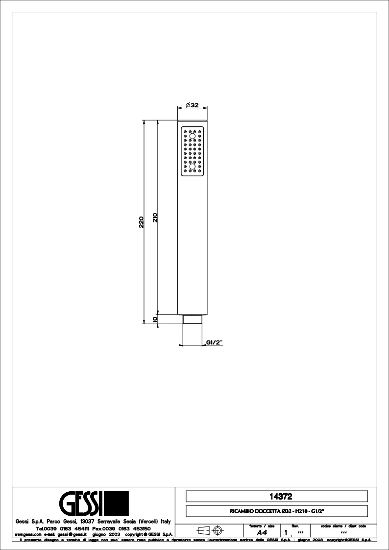 Душевая лейка Gessi Inciso 14372.727 Brass Brushed PVD
