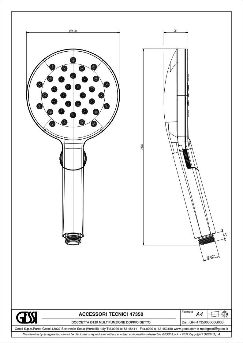 Душевая лейка Gessi Origini 47350.279 Matte White