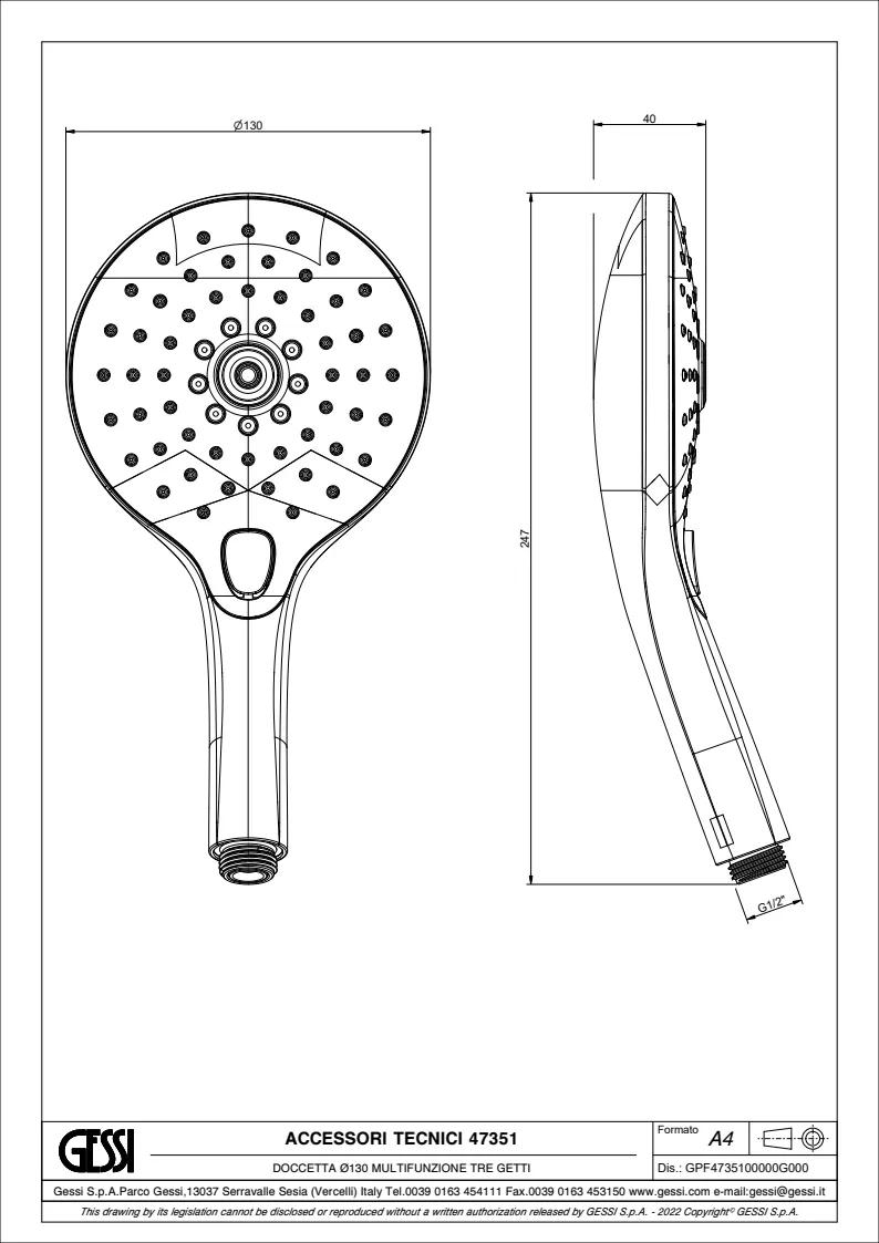 Душевая лейка Gessi Origini 47351.727 Brass Brushed PVD