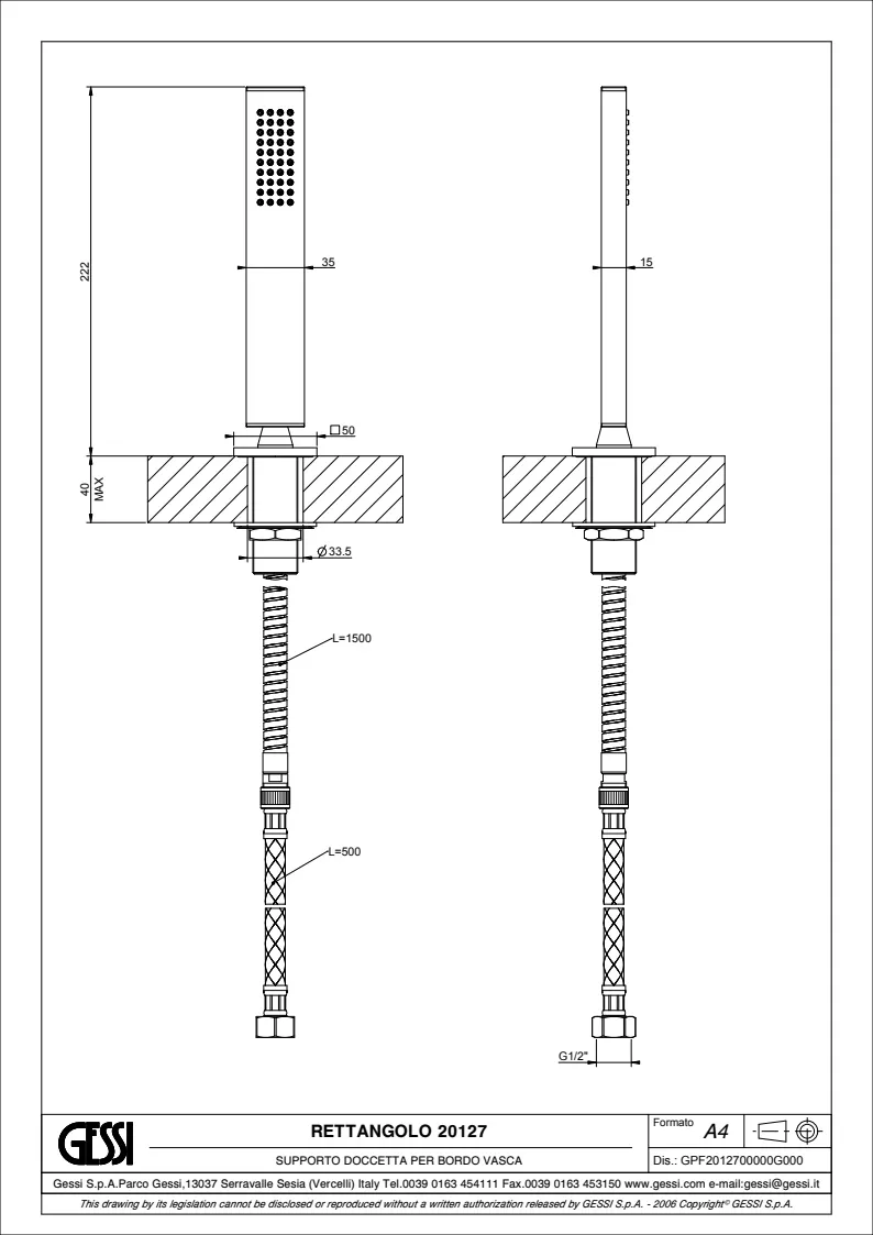Душевая лейка Gessi Rettangolo 20127.299 Matte Black