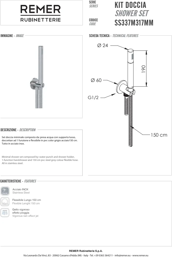 Ручной душ Remer Комплект для душа шланг держатель нержавеющая сталь SS337M317MM