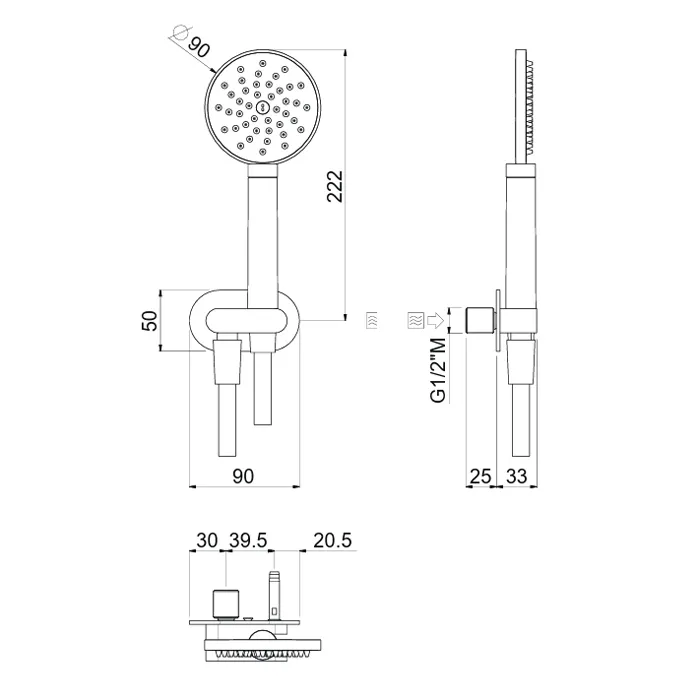 Душевой набор настенный дуплекс Carimali Still Oh с STILO латунной ручкой и держателем 65272-CR