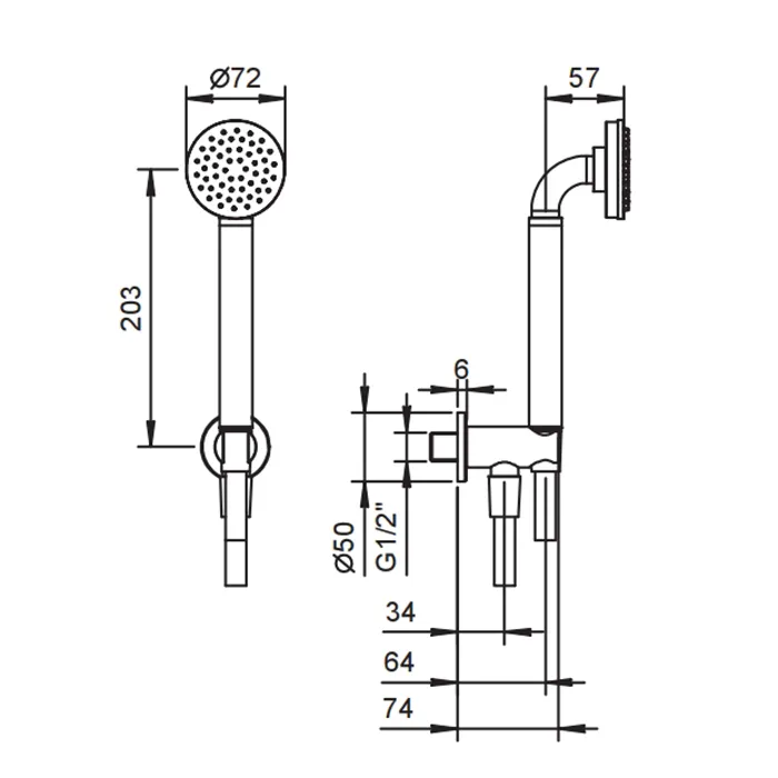 Ручная лейка со шлангом Fantini Icona Classic 1500мм и держателем, впуск 1/2'', Nickel PVD 53 95 R043