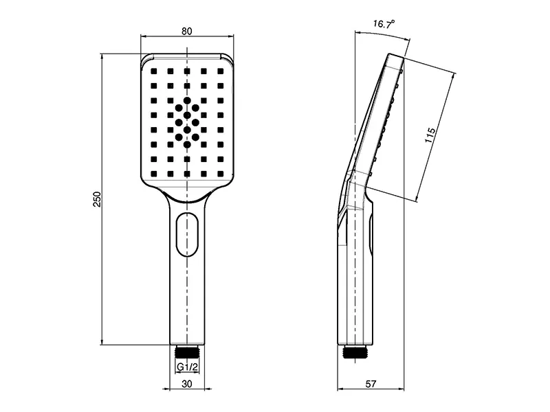 Ручной душ Fima Carlo Frattini F2491CR квадратной формы, с 3 видами струй, с защитой от известкового налета, цвет хром.