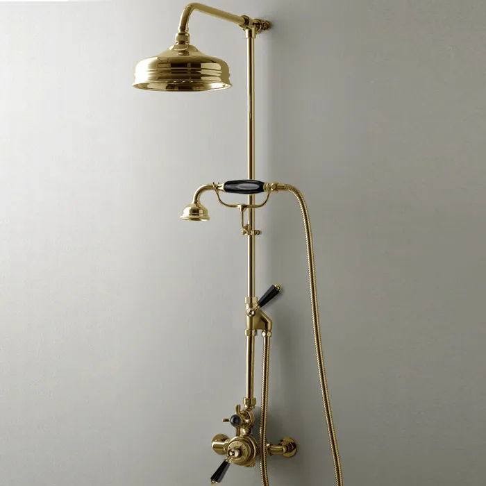 Ручной душ с переключателем и держателем Devon&Devon для термостата MARM74 и душа на стойке MARK3182 с ручкой черной золото светлое MARK618BD