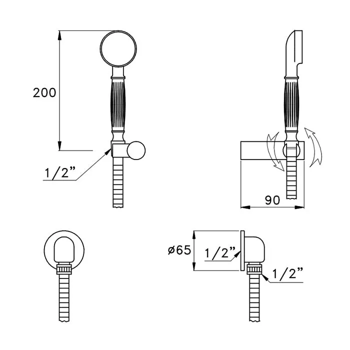 Ручной душ Stella Wellness 200 мм ,с настенным кронштейном, хром CT03115CR00