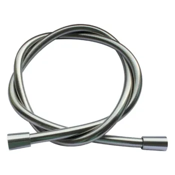 Flexible hose for shower with net working metal colour, in atoxic pvc, with double conical shiny brilliant nut, steel color.