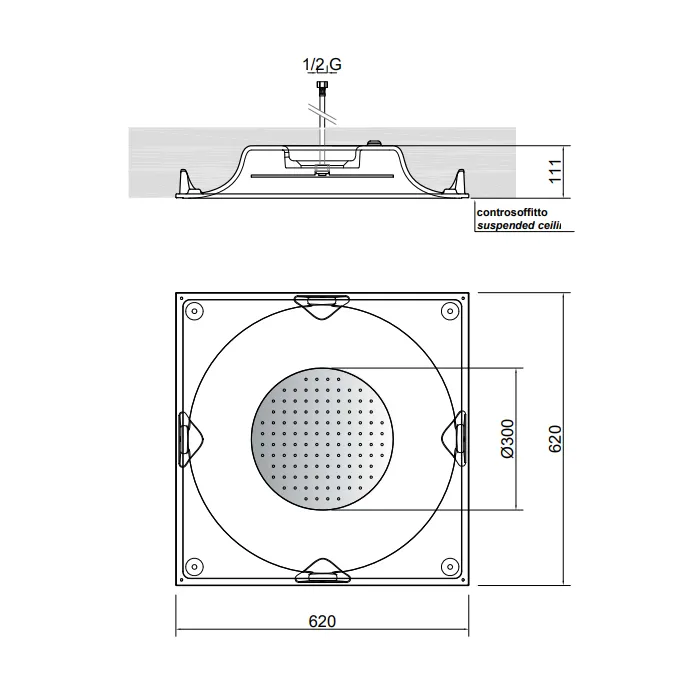 Душевая система Meteo In Antonio Lupi 620 х 620 х 111, без подсветки, нержавейка А0002423701