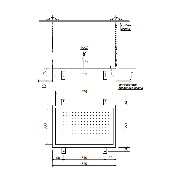 Душевая система Meteo Встраиваемый верхний душ Antonio Lupi 52 x 35 x 11 см. цвет. с LED RGB подсветкой А0002423714