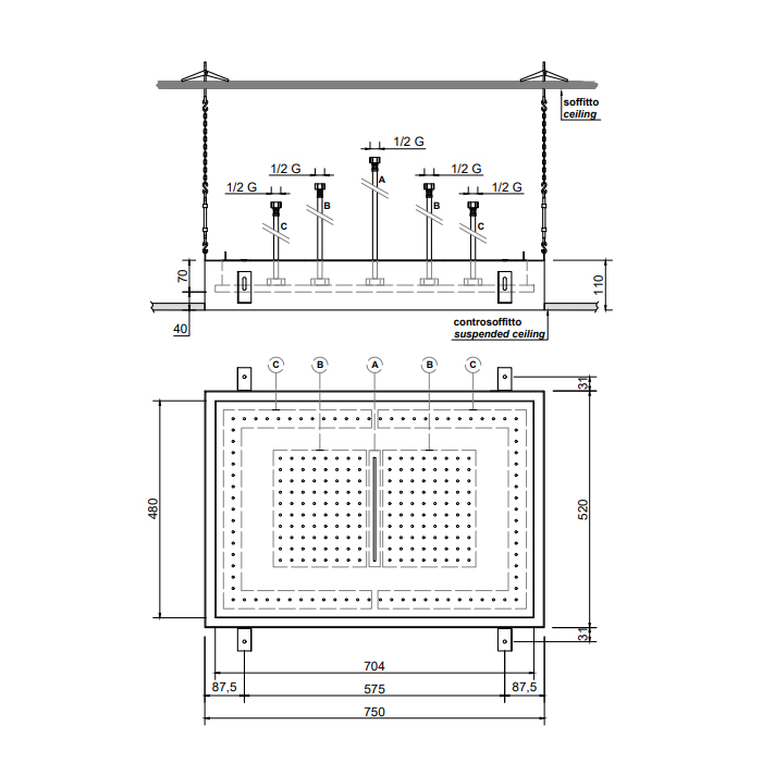 Душевая система встраиваемая Antonio Lupi Meteo 75x52x11, полированная сталь А0002423720