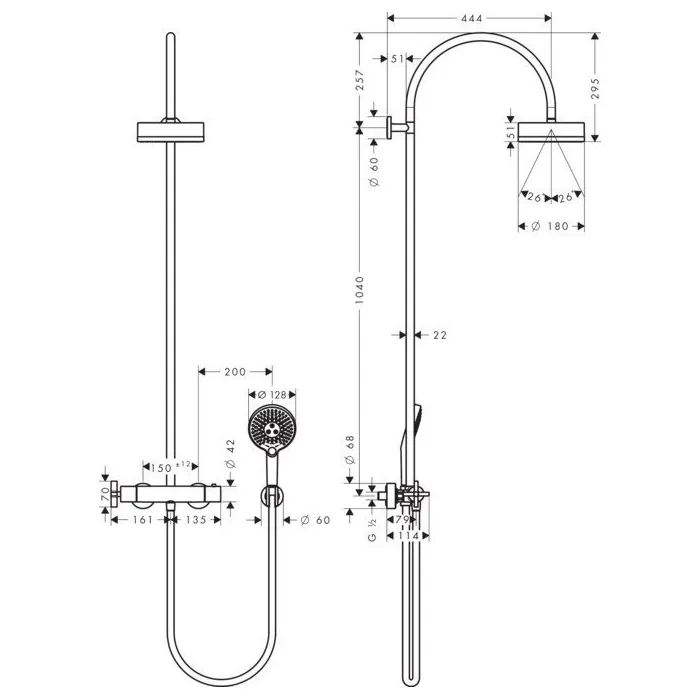 Axor Citterio Душевая стойка с термостатом, верхним душем и шлангом, цвет: хром 39670000