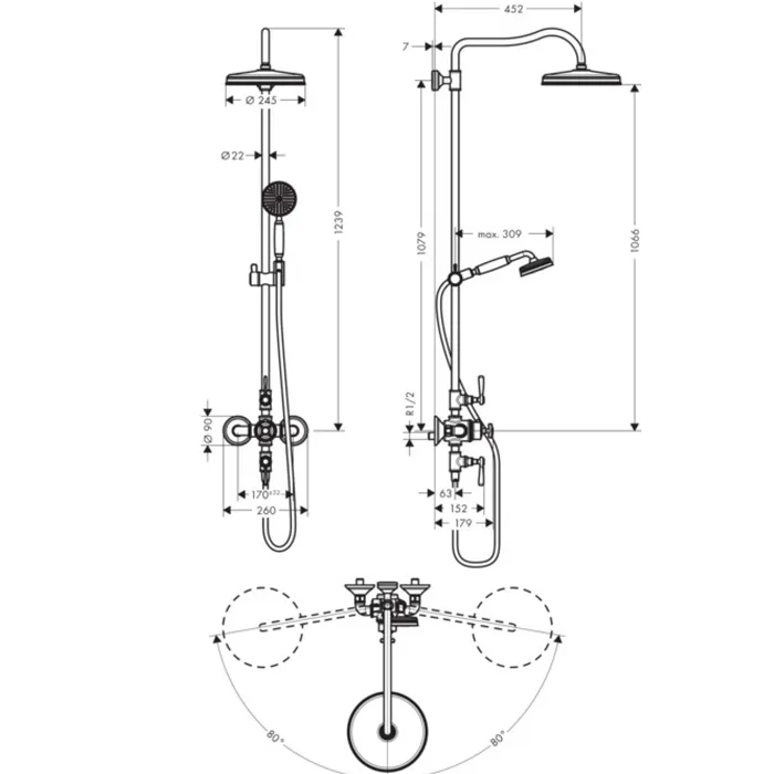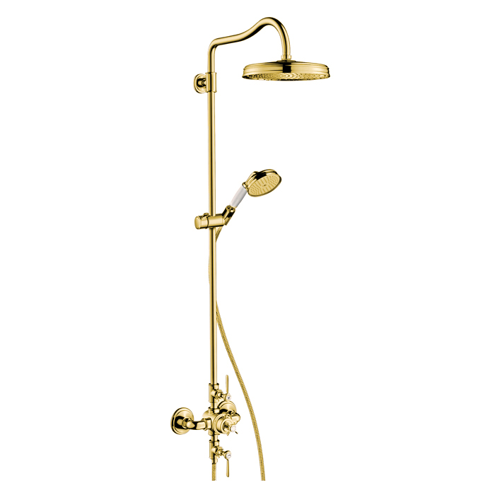 Axor Montreux Душевая стойка с термостатом и верхним душем d=240мм, цвет: полированное золото 165729
