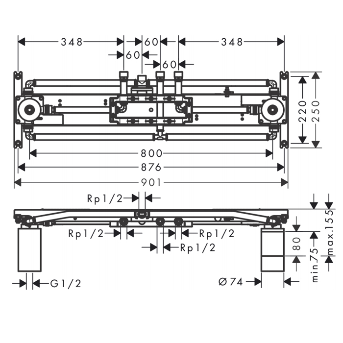 10922180 Скрытая монтажная часть, хром, Axor ShowerHeaven