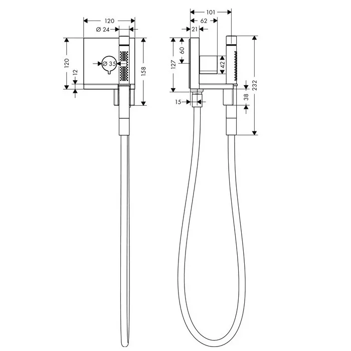 Модуль ручного душа, состоящий из декоративной панели, рукоятки, гильзы и ручного душа