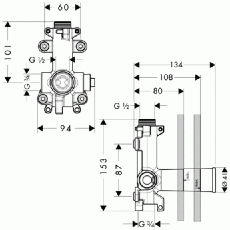 Axor ShowerHeaven Модуль душа, скрытая часть, ¾’ 28486180