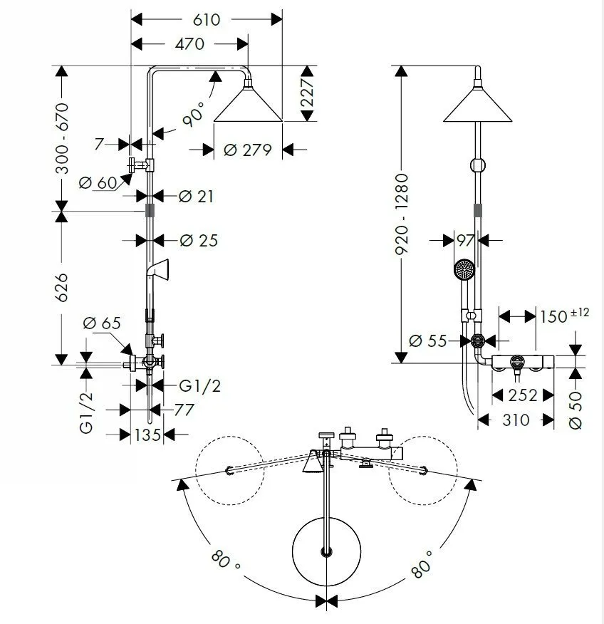 Axor Showers/Front Душевая система Showerpipe с термостатом и верхним душем, цвет: хром 26020000