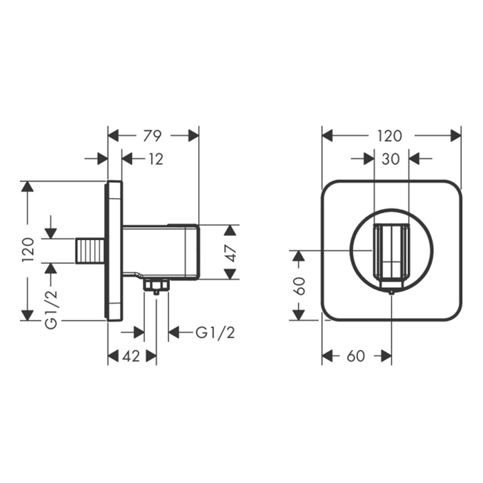 Axor ShowerSelect Вывод воды с клапаном и держателем ручного душа, ½’, цвет: шлифованна