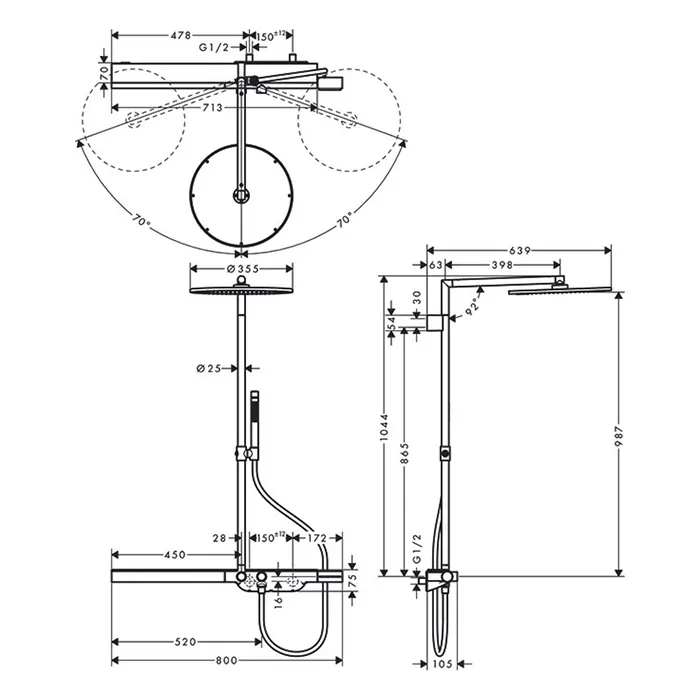 Axor ShowerSolutions Душевая стойка с термостатом, верхним душем Ø350мм, 1jet, шлангом, ручны