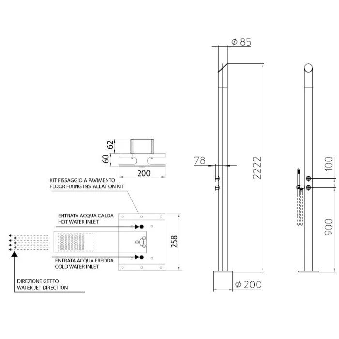 Bossini Aquabambu Душевая колонна со смесителем и ручным душем, каскад, напольная, цвет: хром L00866