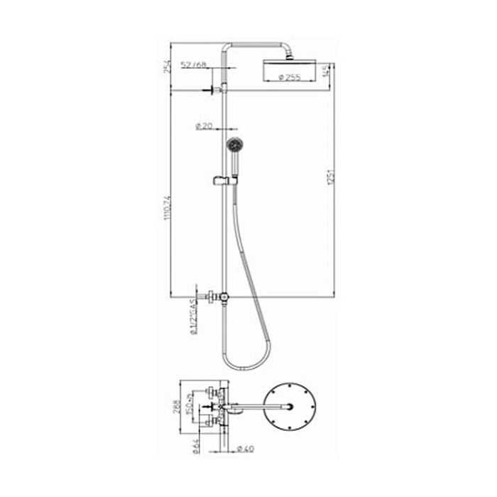 Bossini Elios Настенная колонна: Душ из ABS, Ø250 ручной душ, смеситель термостатический или
