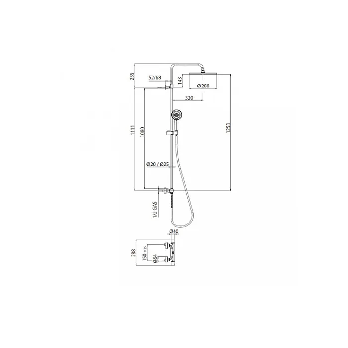 Bossini Elios Настенная колонна: Душ из ABS, Ø250 ручной душ, смеситель термостатический или
