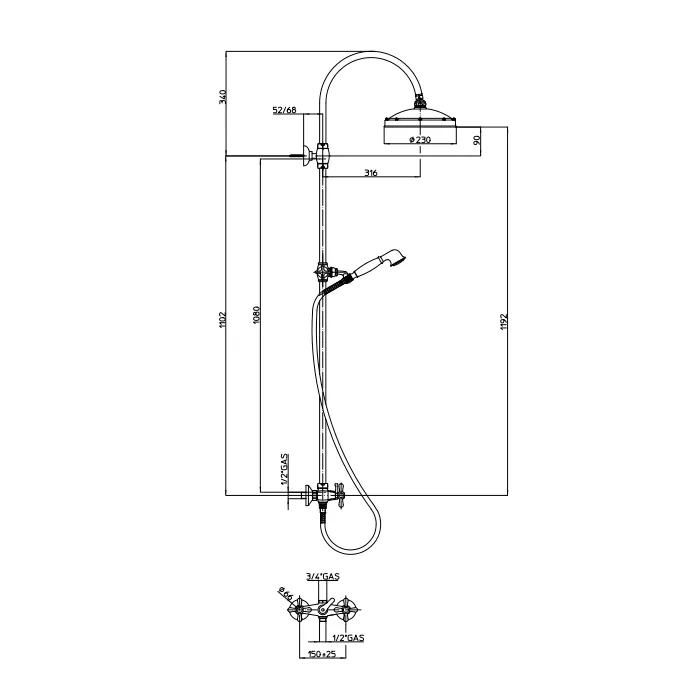 Bossini Retro Colonne Piscina Душевая стойка с верхним душем Ø23см., ручным душем и шлангом 150см., цвет: хро