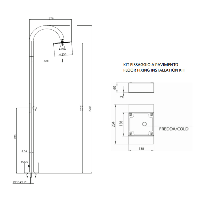 Bossini Tetis Душевая колонна с верхним душем Ø25см., напольная, цвет: хром L00686.030