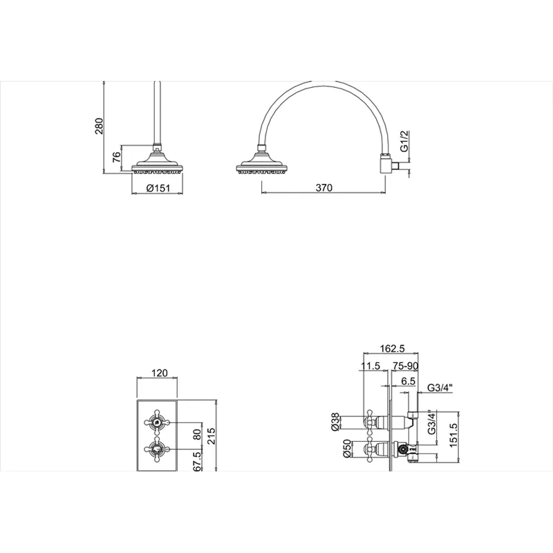 Термостат Burington Trent встраиваемый, с 2-я выпусками (с 1 перекл. подачи воды) Золото TF2S