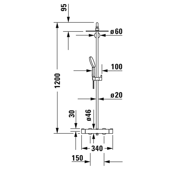 Duravit C.1 Душевая колонна с термостатическим смесителем, верхним душем, штангой и лейкой, цвет: хром