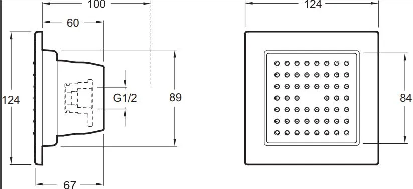 Встраиваемая душевая форсунка Watertile E8002-CP поворотная, квадратная.