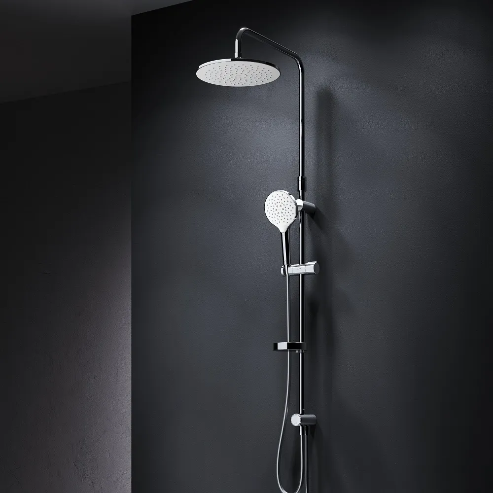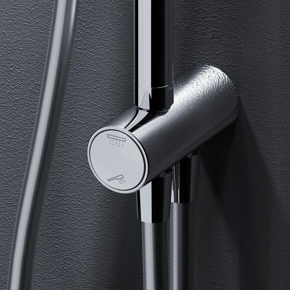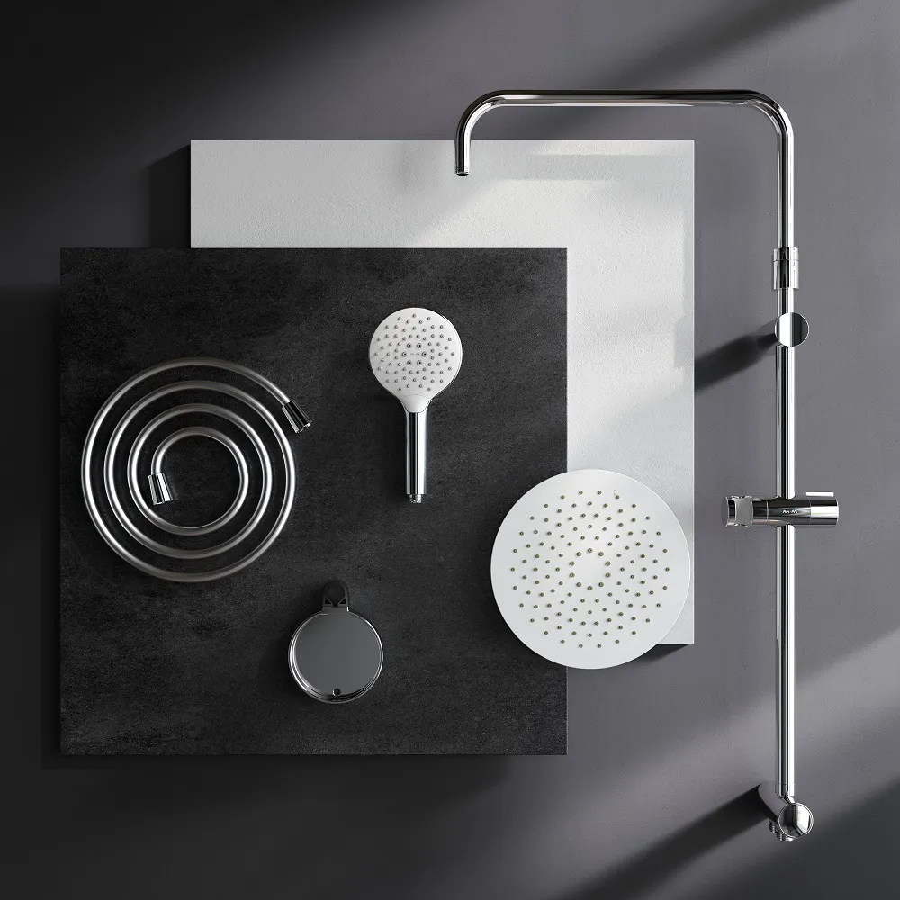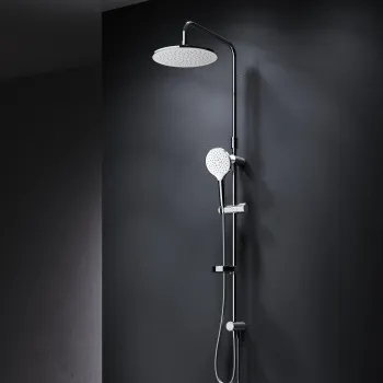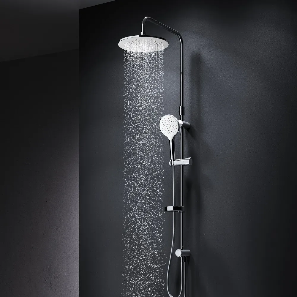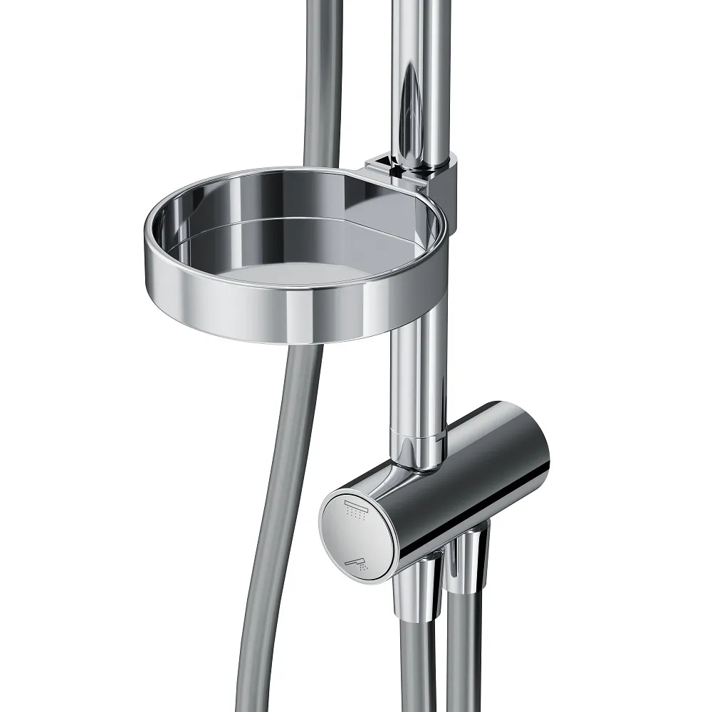 Тотальный дизайн в действии: все детали душевой системы – от пропорций ручного и верхнего душей до рисунка расположения форсунок на лейках – подчинены единой дизайн-концепции в ультра-модном стиле Dynamic Organic.