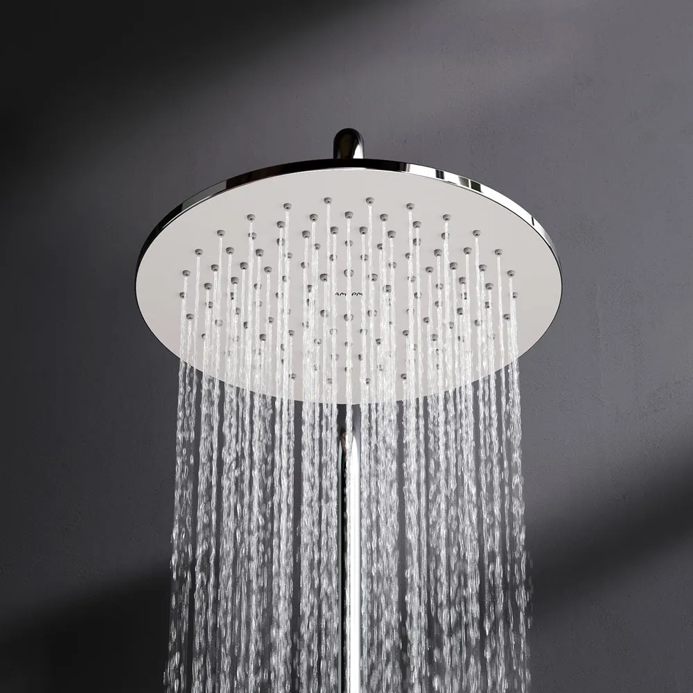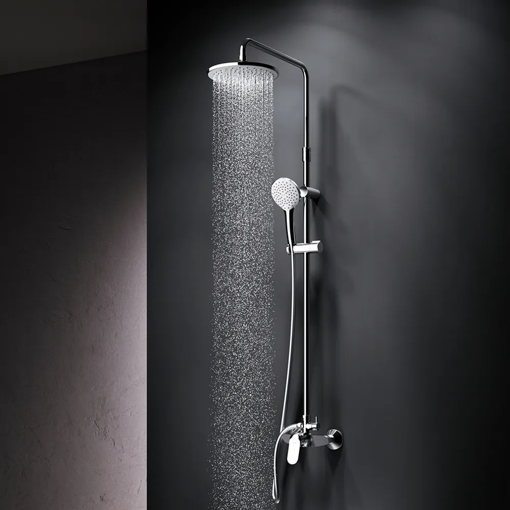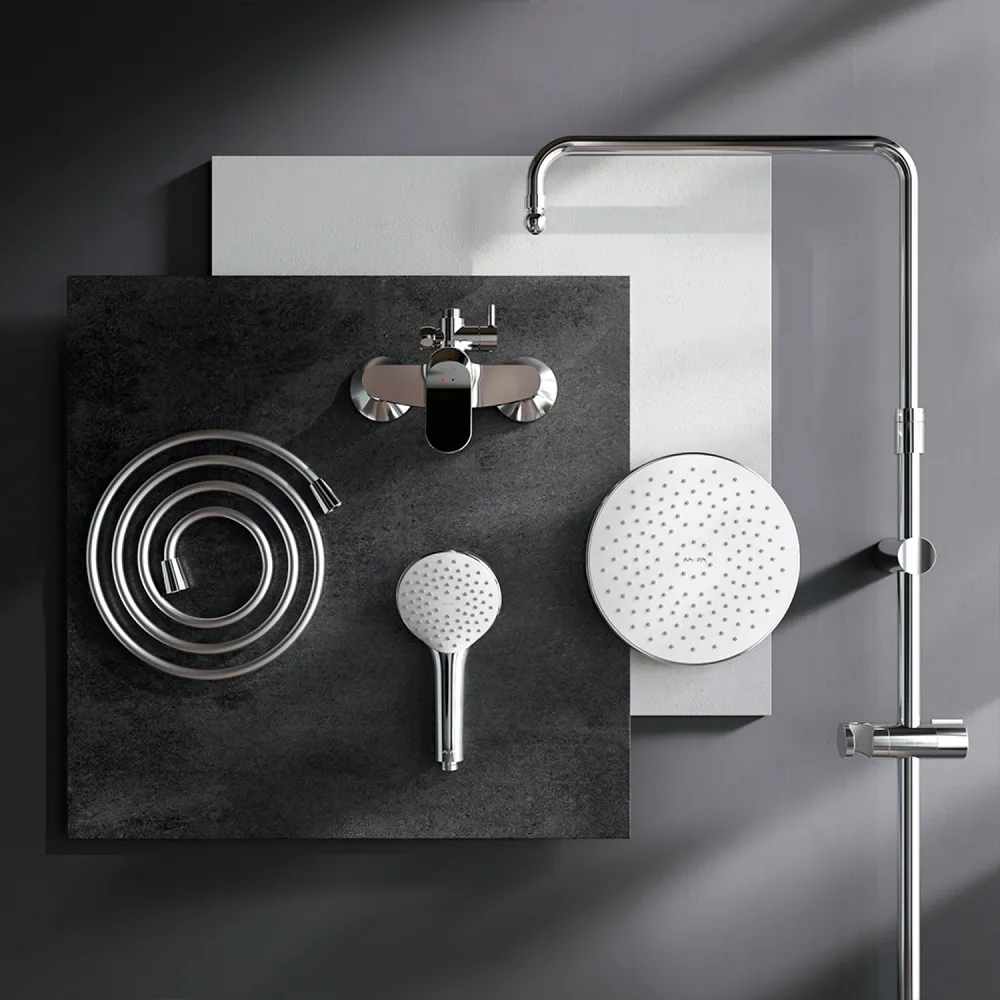 Тотальный дизайн в действии: все детали душевой системы – от пропорций ручного и верхнего душей до рисунка расположения форсунок на лейках – подчинены единой дизайн-концепции коллекции Sunny.