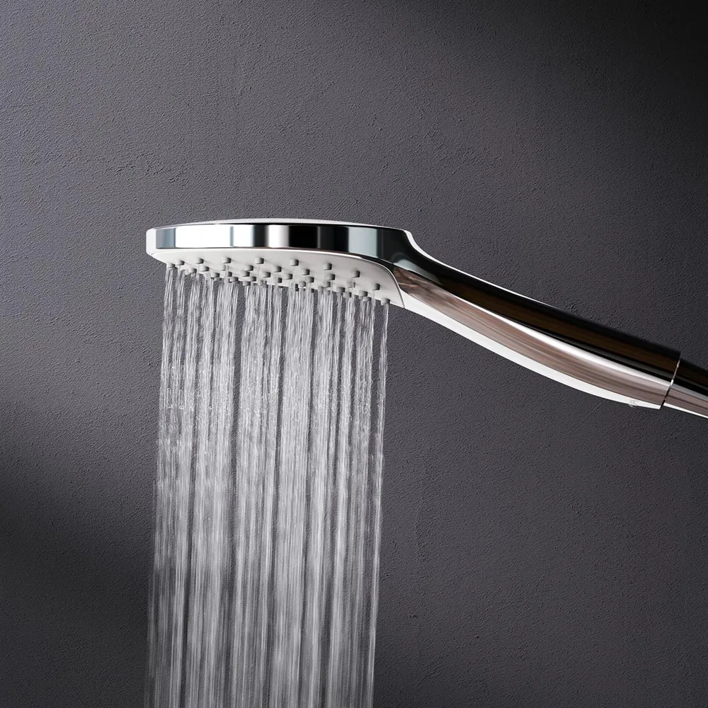 Тотальный дизайн в действии: все детали душевой системы – от пропорций ручного и верхнего душей до рисунка расположения форсунок на лейках – подчинены единой дизайн-концепции коллекции Sunny.