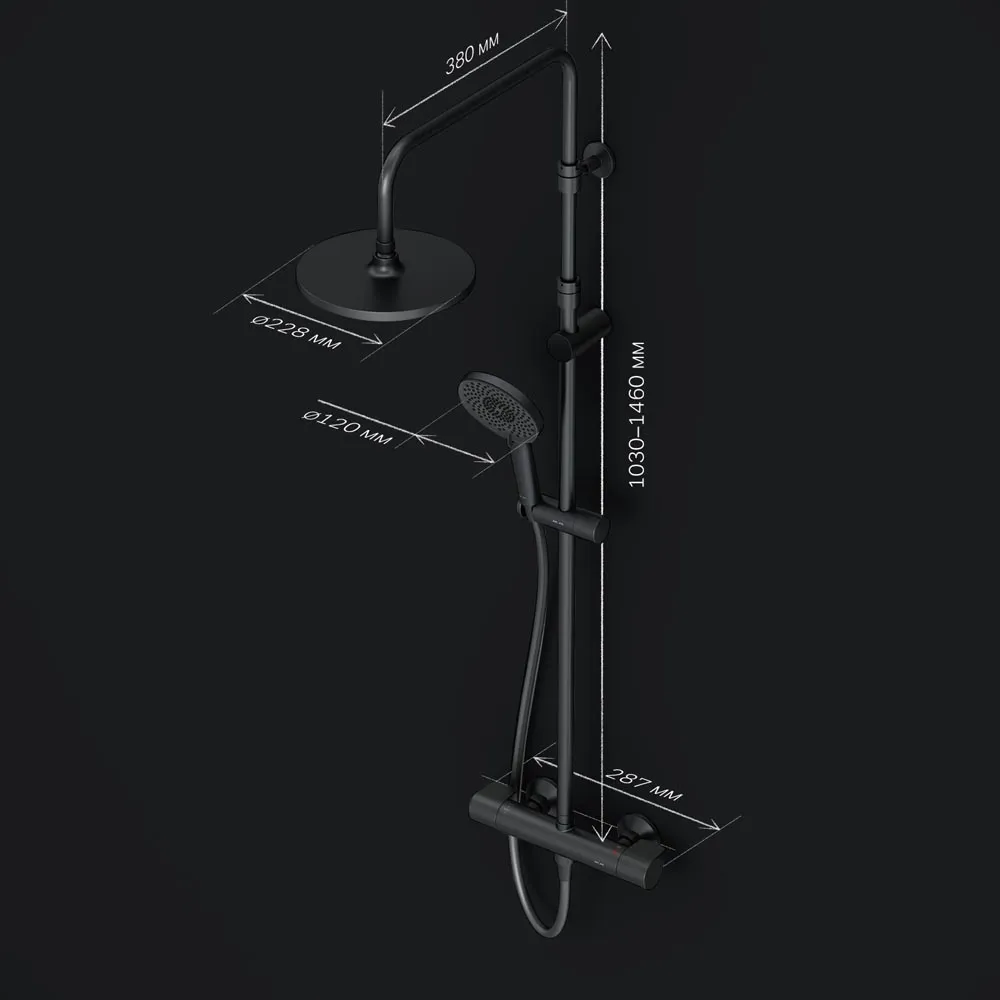 • Длина душевой штанги: 1030-1460